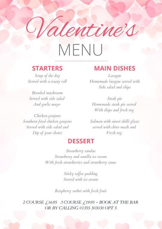 Valentines Day Menu